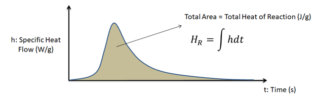DSC provides detailed, reliable data on cure kinetics for thermosetting polymers. Cure kinetics modeling is based on measuring the heat of reaction during cure as a function of various temperatures or heating rates. The exothermic peak is integrated to find the residual heat of reaction. Using the following equation, the DOC can be found.