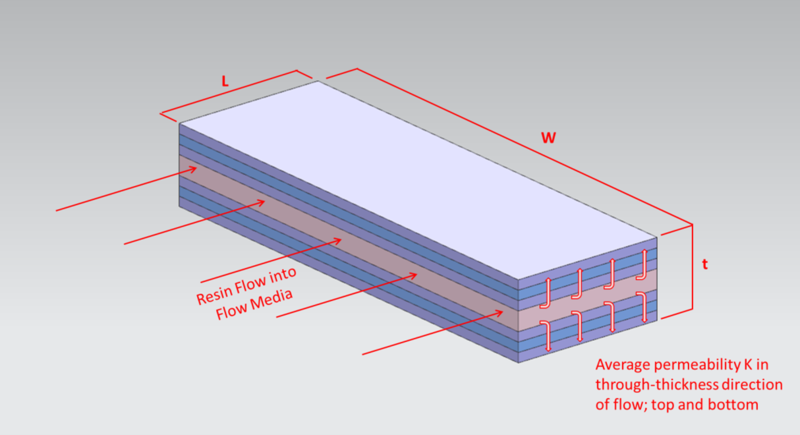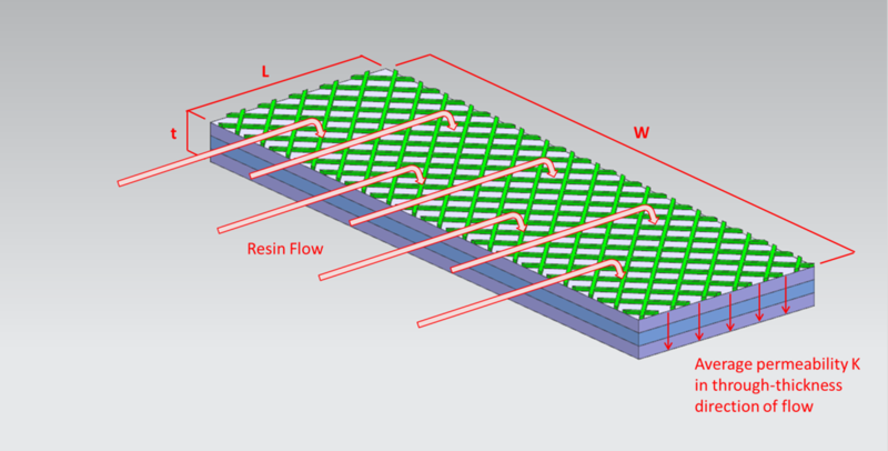 - Permeability: The reinforcement permeability is now considered in the through-thickness direction. This permeability will not be the same as the in-plane permeability and may be higher or lower, depending on the reinforcement architecture.
