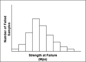 As seen in Figure 1, the example histogram is skewed to the left, meaning that the Weibull Distribution method may be suitable for this data set. With a limited number of specimens, it can be challenging to confidently determine the most appropriate distribution model. Below are some examples of commonly used distributions for strength-based allowables and the equations used to calculate the B-Basis value from the corresponding distribution [1][2].