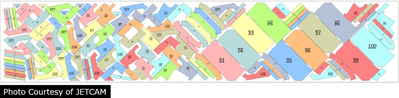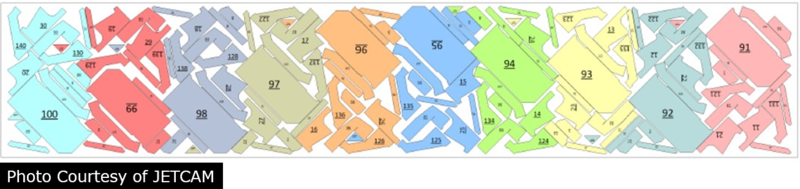 Designed for either material efficiency or picking/unloading from the cutting table. It is for a known run of ply cutting and is typically reused regularly. Reusing the nest increases the efficiency of the picking and kitting process as operators picking parts can quickly learn the part sequence by heart.