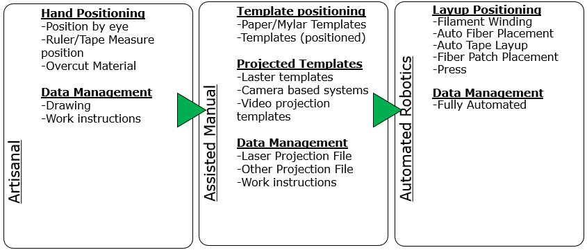 Even so, the most common form of layup still found in industry is still hand layup. As a result, it is imperative to have a good understanding of the process and associated technologies used to assist operators in a factory setting.