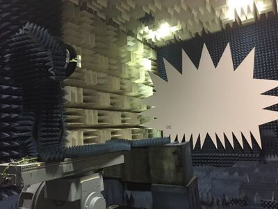 Fourteen small fibreglass test panels were manufactured for signal attenuation testing. The type and thickness of core was adjusted, along with the ply thickness and fibre content. The test thicknesses were decided using the data from the signal calculations and structural analysis performed during the conceptual design stage. Testing was performed by bouncing signals between the desired frequencies off a reflector and measuring the received decibel level as shown in the figure below. During the test the receiver was rotated from -120 degrees through +120 degrees. First, the test was performed without any composite panels attached to the receiver to measure a baseline value. The test was then repeated fourteen times with one of the composite panels attached to the receiver each time. The measured signal from each of the trials was then compared to the reference measurement to calculate the signal loss. The testing confirmed that all the panels met the signal loss requirement, but some of the panels performed significantly better than others and were selected for further structural analysis.